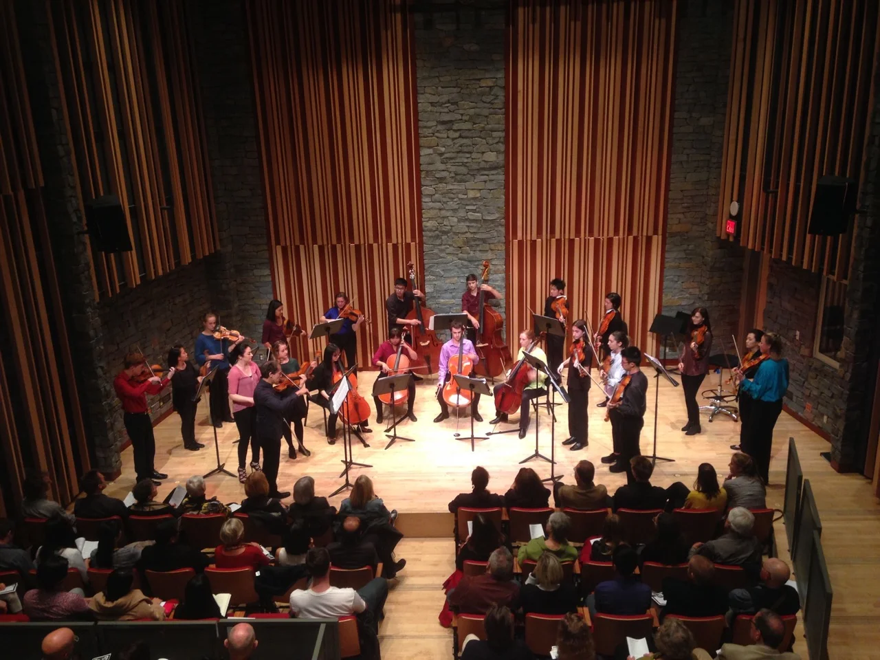 This past week I participated in the Kessler Academy, a chamber orchestra playing 20th century classical music. This was a great experience for me due to the very high level of all the participants and the coaching by the Microcosmos Quartet. It was also very exciting because the repertoire, which included works by Stravinsky and Bartok, was all new to me. I had an extraordinary time working on the pieces and taking in all the new information. I also feel as though the classical side of my playing has improved a great deal just in that short week. Here is a photo of our final performance yesterday: